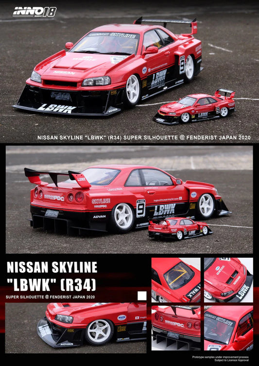 1:18 LBWK Nissan E-R34 Super Silhouette Skyline GTR Red INNO18